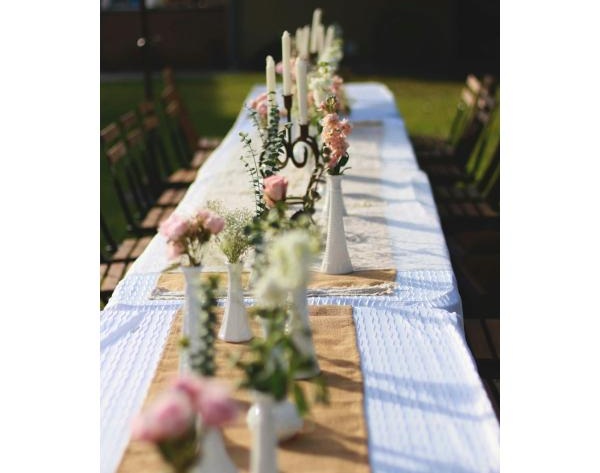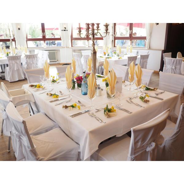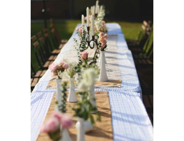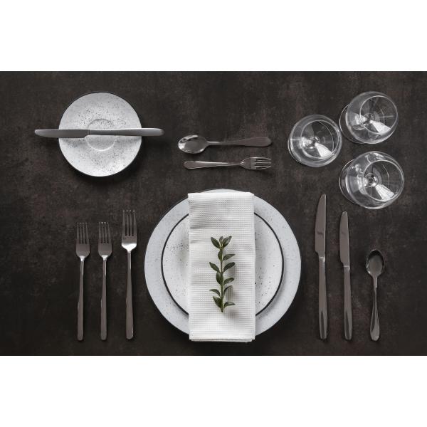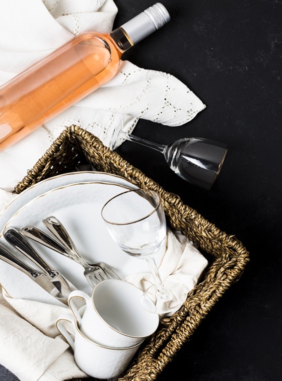 Tableware : Plates, bowls, cutlery, glasses, cups, saucers.