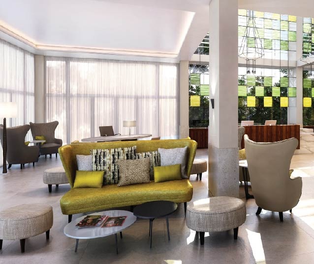 Lobby : Sofas, armchairs, coffee tables, end tables, reception desks.