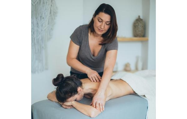 Spa : Treatment tables, relaxation chairs, storage cabinets.